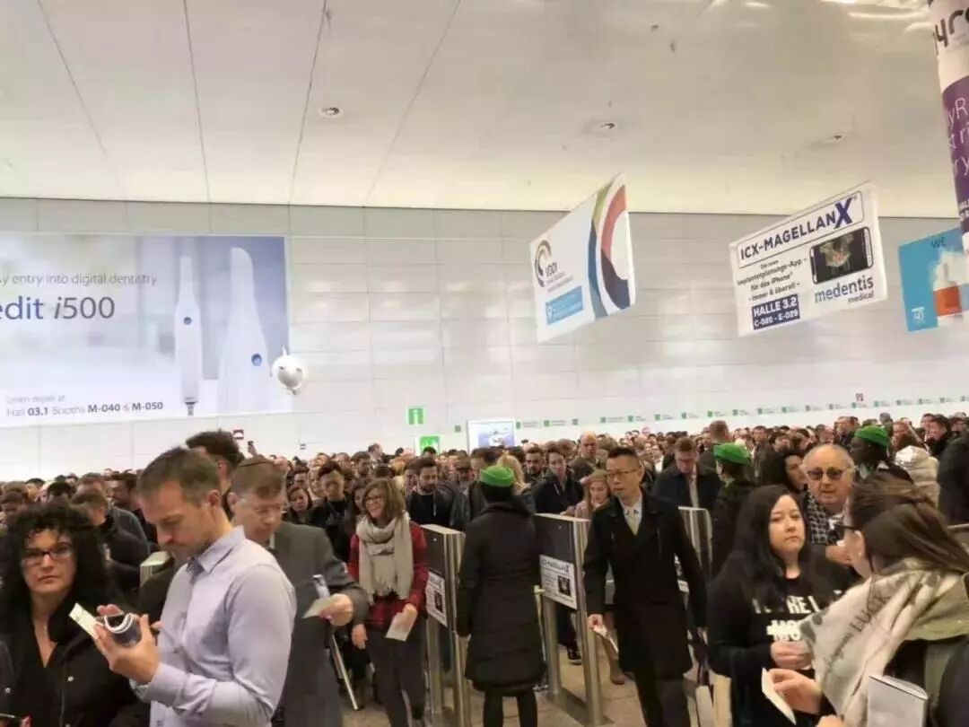 展会刚开始,门口就已经汇聚了来自全球各地的口腔同行们,现场热闹非凡。