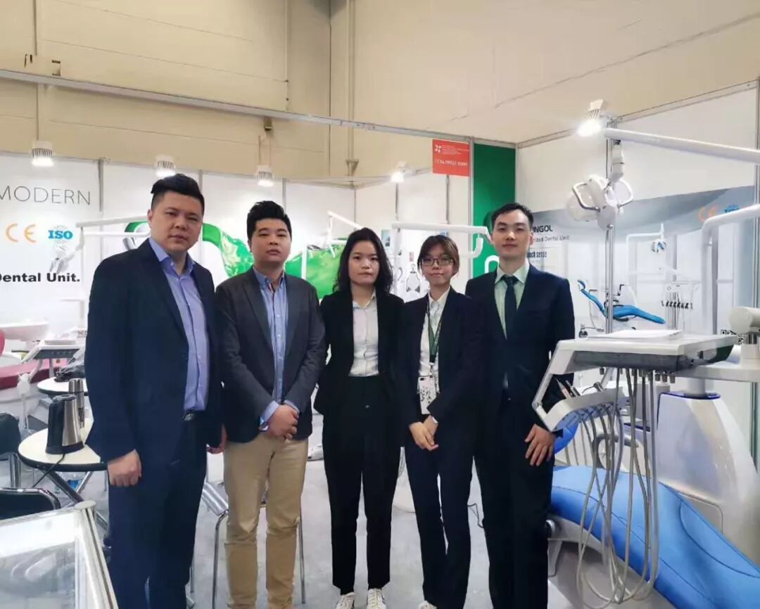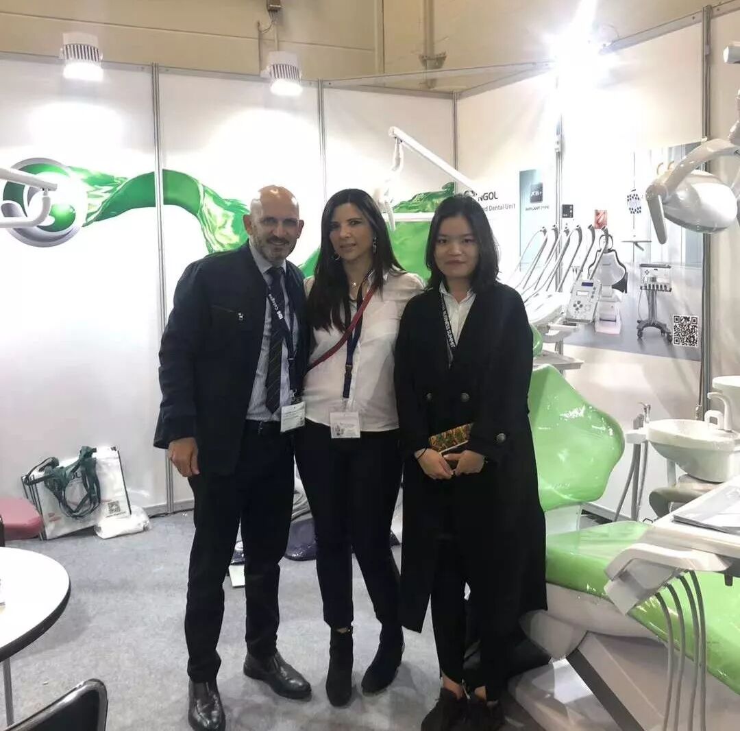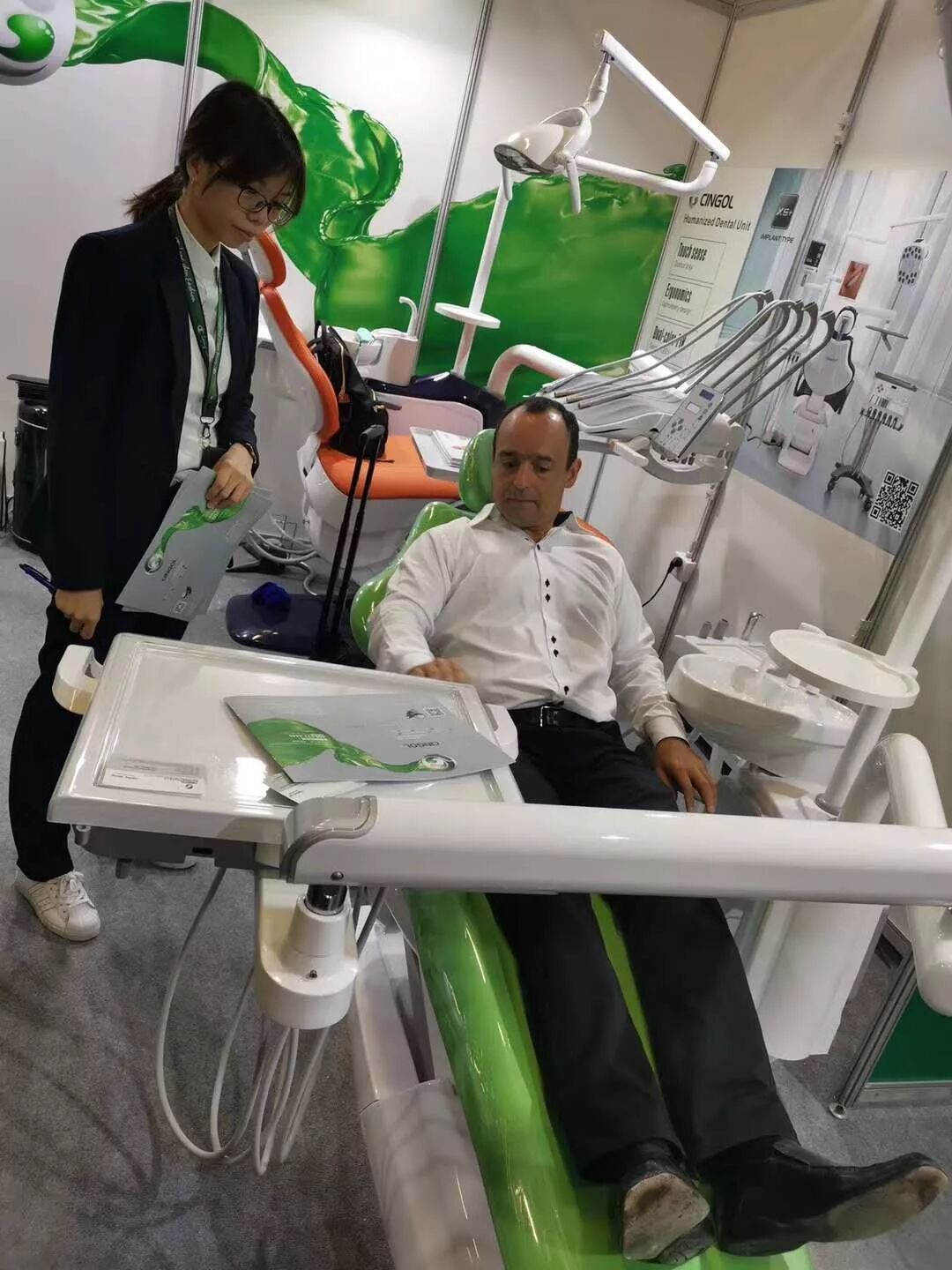 新音乐牙椅、新格X3+牙椅、新格X5落地牙椅、新格X5上挂牙椅 本次展会 新格医疗总经理金龙先生率队参加 在展会上与多位欧洲用户进行亲切交流 面对面了解欧洲市场的需求 询问新格产品的使用情况 新格品牌已进入欧洲4年余 新格一直秉承“用户体验感就是未来”的发展方向 深入了解市场 打造极致用户体验感是新格扎根欧洲的根本 新格团队与外国牙椅朋友合影,为新格点赞。在展会中,新格展示的新音乐牙椅、新格X3+牙椅、新格X5落地牙椅、新格X5上挂牙椅等产品同样备受国外朋友的喜爱和欢迎。