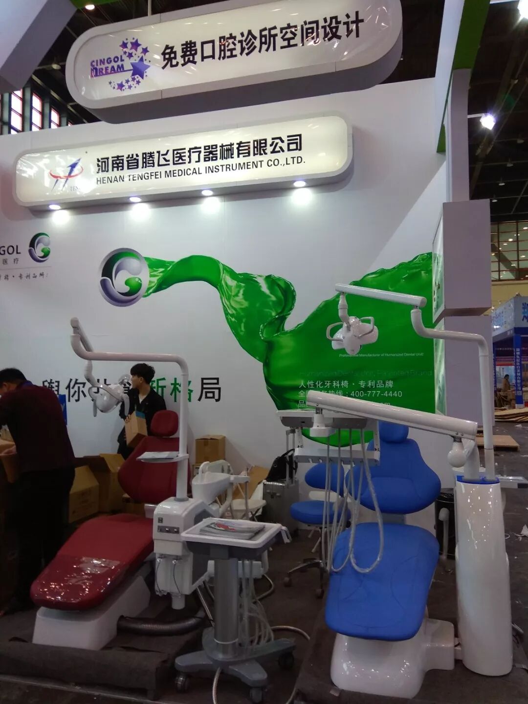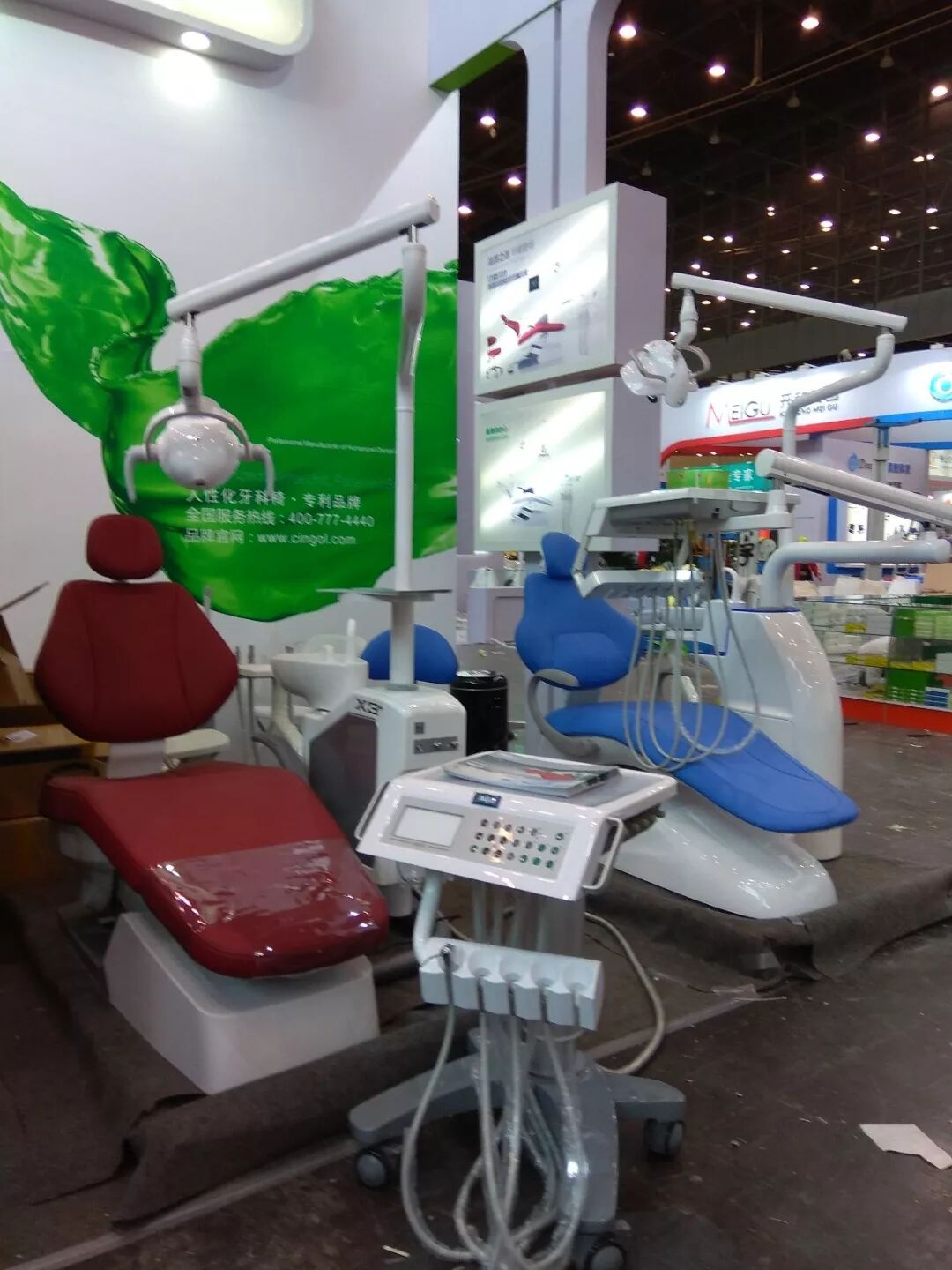 此次展会上展出的产品有:新音乐牙椅、X3、X5、VK(唯开中央负压系统)