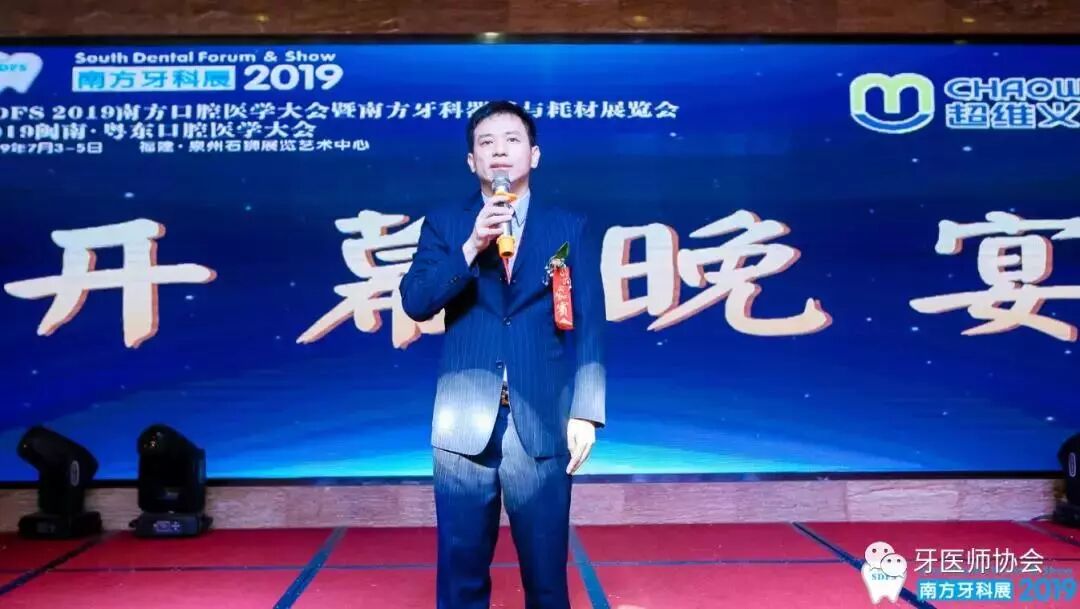 3日晚,泉州市牙医师协会会长在开幕联谊会上发表讲话,并举行会旗交接仪式。