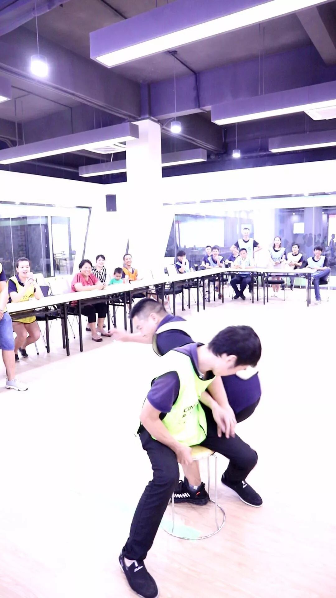 第四项:晕头转向抢板凳 6队各派两名成员出战,围着椅子站一圈,金龙董事长亲自播放暂停音乐。音乐起开始转圈,音乐停看谁抢到座位。每次淘汰一人,之后再减少一个椅子。如此循环,直到最后一人胜出。