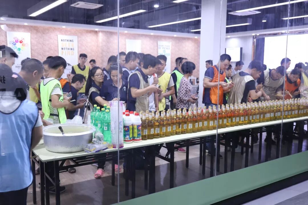 炎炎夏日,激情6月。绿色成荫,鸟语花香。2019年6月22日,在这个特殊的日子里,一场新格公司的盛大晚会隆重举行。@:佛山市丹灶镇江沥北路南沙工业区一期6栋 活动咨询 22日下午17时,新格的后勤人员奋战一线准备好了开展活动的全部所需。此次联谊会开展在新格公司三楼大型会议室,活动还没举行期间,很多新老员工欢聚一堂,跃跃欲试! 新格全体人员聚集到三楼大型会议室,按活动规定分为橙队、蓝队、绿队、黄队、灰队、金队6组,一同坐等活动开始。 厂长的一番激扬致词后,意味着活动的正式开始,大家热情欢呼!新格全体员和5队队员工来到美食前,享受美食,补充体力,希望在新格联谊这个大舞台上勇夺冠军! 体力补充 这是公司为可爱的新仔们, 精心准备的美食小吃! 活动火热进行中...... 第一项:拔河 拔河比赛正式开始,绿队与橙队实力不分上下,经过双方的不懈努力,最后绿队险胜! 黄队VS蓝队 黄队与蓝队也是旗鼓相当! 中国的新格 世界的新格 新格与你共创新格局
