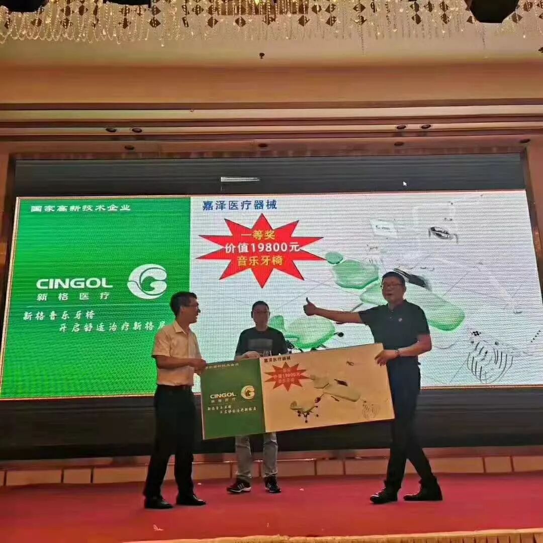 照片精彩回顾 从会场入口我们可以看到 很多新格医疗的产品元素展现在大家眼前 签到以后正式进入主会场 会议另一边还有我们新格医疗的明星产品 晚会压轴大奖 绑上大红花等待幸运儿 马上进入晚宴中 恭喜幸运的人儿 喜得我司明星产品 @新格音乐牙椅 并由我司区域经理颁奖送出 第二天就马上进驻诊所内 正式为人民服务 本次参与感谢协会的邀请,让我司对嘉兴市口腔医学深入了解,也我司往后对该地方业务开展、资源整合有着极大帮助。 就此活动落下帷幕。 下届我们再聚!